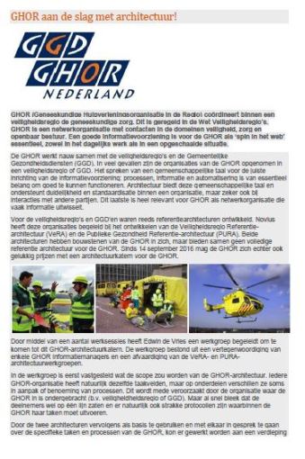 GHOR (Geneeskundige Hulpverleningsorganisatie in de Regio) coördineert binnen een veiligheidsregio de geneeskundige zorg. Een goede informatievoorziening is voor de GHOR als ‘spin in het web’ essentieel, zowel in het dagelijks werk als in een opgeschaalde situatie.